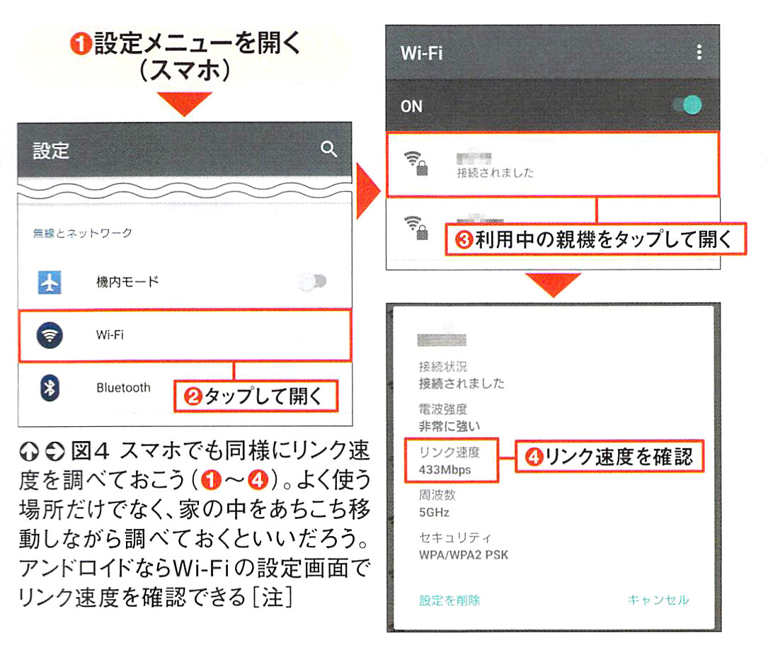 ケースCは、元のSSIDを流用せず、新しい親機の設定を変えずに使う方法。この場合、これまで使っていた子機は、すべて接続設定をやり直す必要がある。その手順は後ほど解説する(図29)。