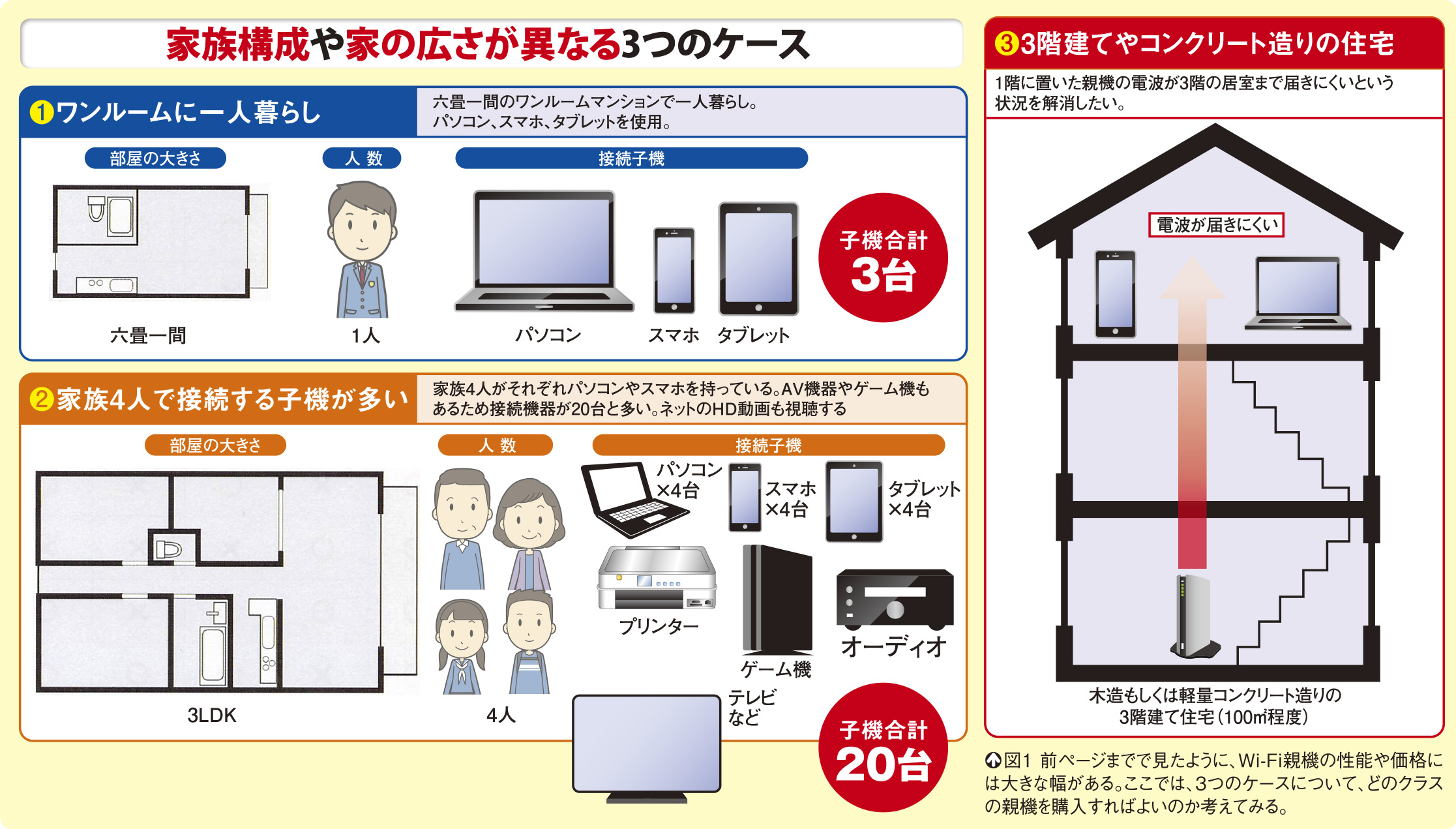 ここからは、具体的な手順を見ていこう。取り上げるのは、引っ越し機能を使う方法(ケースA)、新しい親機を設置してSSIDと暗号キーを元のものに書き換える方法(ケースB)、新しい親機を設置して子機の設定をやり直す方法(ケースC)だ。